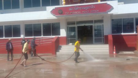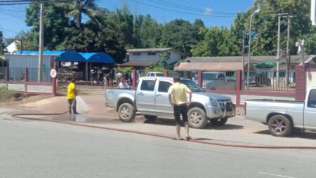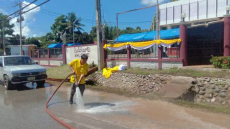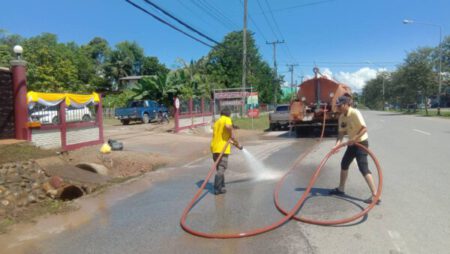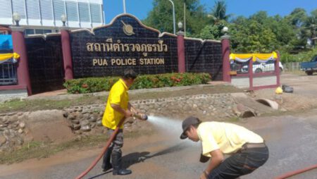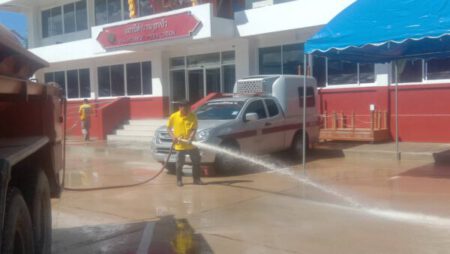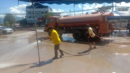 เนื้อหา : ด้วย นายธวัช พรหมรักษ์ รองนายกเทศมนตรีตำบลปัว รักษาราชการแทน นายกเทศมนตรีตำบลปัว ได้มอบหมายให้งานป้องกันและบรรเทาสาธารณภัย ดำเนินการออกให้บริการน้ำ ในวันที่ ๒๕ กรกฎาคม พ.ศ. ๒๕๖๕ เวลาประมาณ ๑๐.๓๐ น. ณ สถานีตำรวจภูธรปัว เพื่อทำความสะอาดชะล้างสิ่งสกปรก สำหรับเตรียมการทำพิธีเปิดอาคารใหม่ ตามที่หน่วยงานร้องขอมา