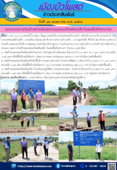 ออกตรวจการก่อสร้างลำเหมืองและถนนคอนกรีตเสริมเหล็ก ในเขตพื้นที่เทศบาลฯ