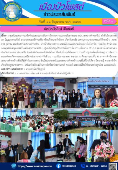 เนื้อหา : ศูนย์ประสานงานเครือข่ายเฉพาะประเด็นการจัดการความปลอดภัยทางถนน (ศปง. เทศบาลตำบลปัว) นำทีมโดยนางยุภา ปัญญาวรรณรักษ์ นายกเทศมนตรีตำบลปัว พร้อมด้วยนายกิตติกาจ เกียรติมหาชัย เลขานุการนายกเทศมนตรีตำบลปัว , นายธวัช อุตรชน สมาชิกสภาเทศบาลตำบลปัว , หัวหน้าส่วนราชการ และพนักงานเทศบาลตำบลปัวที่เกี่ยวข้อง ร่วมกับ สำนักงานกองทุนสนับสนุนการสร้างเสริมสุขภาพ (สสส.) , ศูนย์สนับสนุนวิชาการเพื่อการจัดการเครือข่าย (ศวภ.) และสำนักงานขนส่งจังหวัดน่าน สาขาอำเภอปัว ร่วมกันจัดกิจกรรมนักบิดมือใหม่ มีใบขับขี่ ภายใต้โครงการ ร่วมสร้างชุมชนท้องถิ่นน่าอยู่ การจัดการความปลอดภัยทางถนนแบบมีส่วนร่วม ระหว่างวันที่ ๑๐ – ๑๑ มิถุนายน พ.ศ. ๒๕๖๖ ณ ห้องประชุมชั้น ๒ อาคารสำนักงานเทศบาลตำบลปัว เพื่อให้ผู้เข้าร่วมการอบรม ซึ่งเป็นประชาชนในเขตเทศบาลตำบลปัว และพื้นที่ใกล้เคียง มีความรู้ ความเข้าใจเกี่ยวกับกฎหมายจราจร , เสริมสร้างทักษะด้านการขับขี่รถจักรยานยนต์ รถยนต์ และการใช้รถใช้ถนนอย่างถูกต้อง และปลอดภัย