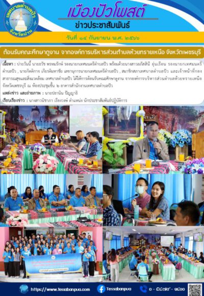 เนื้อหา : บ่ายวันนี้ นายธวัช พรหมรักษ์ รองนายกเทศมนตรีตำบลปัว พร้อมด้วยนางสาวลภัสสินี อุ่นเรือน รองนายกเทศมนตรีตำบลปัว , นายกิตติกาจ เกียรติมหาชัย เลขานุการนายกเทศมนตรีตำบลปัว , สมาชิกสภาเทศบาลตำบลปัว และเจ้าหน้าที่กองสาธารณสุขและสิ่งแวดล้อม เทศบาลตำบลปัว ได้ให้การต้อนรับคณะศึกษาดูงาน จากองค์การบริหารส่วนตำบลห้วยทรายเหนือ จังหวัดเพชรบุรี ณ ห้องประชุมชั้น ๒ อาคารสำนักงานเทศบาลตำบลปัว