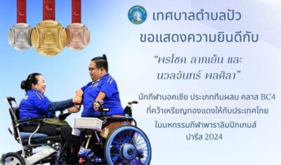 เทศบาลตำบลปัว ขอแสดงความยินดีกับ “พรโชค ลาภเย็น และนวลจันทร์ พลศิลา” นักกีฬาบอคเซีย ประเภททีมผสม คลาส BC4 ที่คว้าเหรียญทองแดงให้กับประเทศไทย ในมหกรรมกีฬาพาราลิมปิกเกมส์ ปารีส 2024