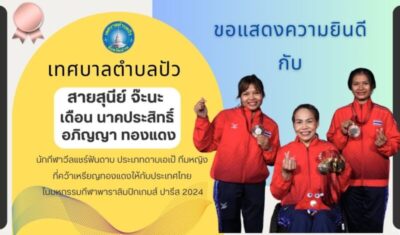 เทศบาลตำบลปัว ขอแสดงความยินดีกับ “สายสุนีย์ จ๊ะนะ , เดือน นาคประสิทธิ์ และอภิญญา ทองแดง” นักกีฬาวีลแชร์ฟันดาบ ประเภทดาบเอเป้ ทีมหญิง ที่คว้าเหรียญทองแดงให้กับประเทศไทย ในมหกรรมกีฬาพาราลิมปิกเกมส์ ปารีส 2024