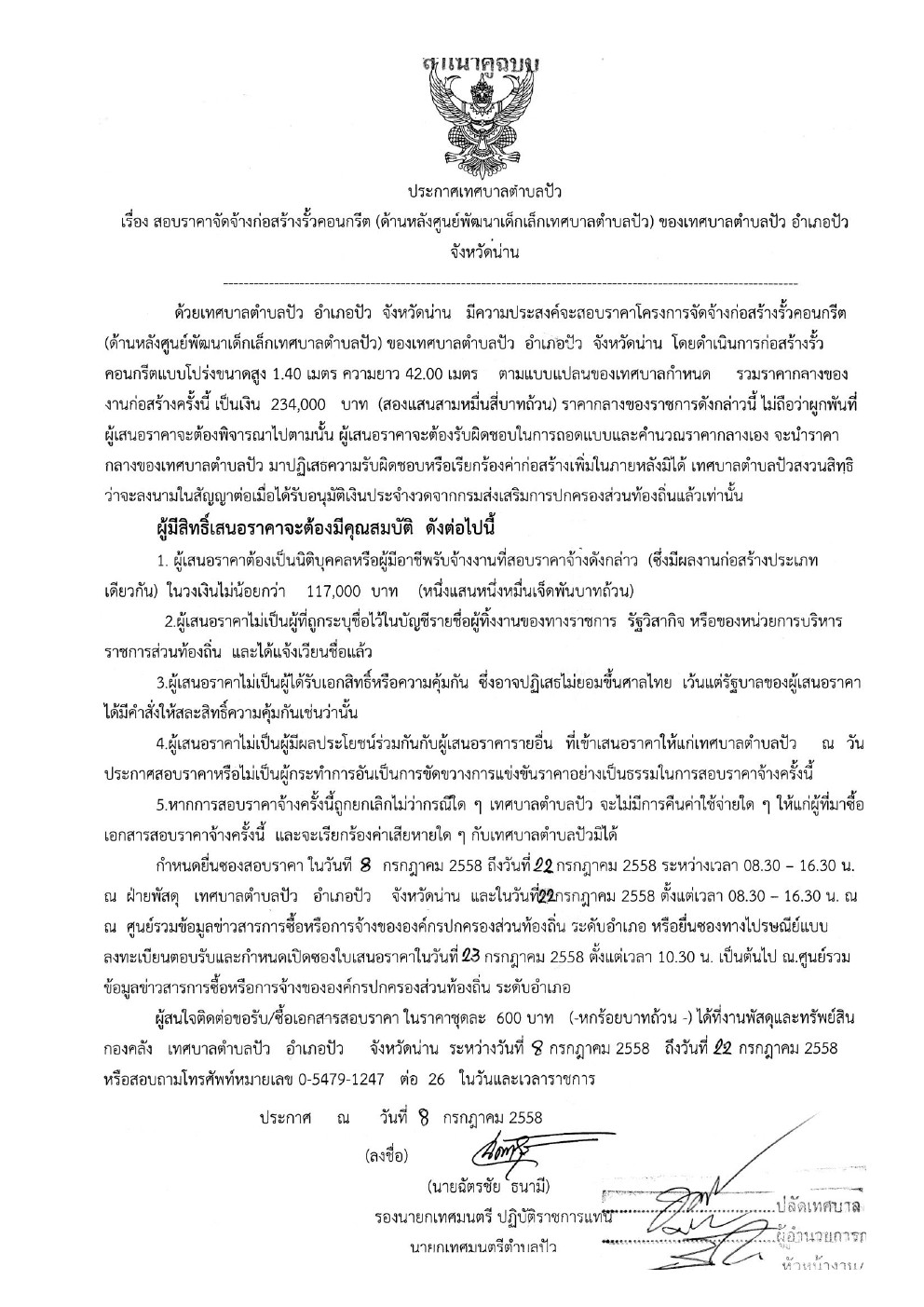 28 สิงหาคม 2558เทศบาลปัว1ประกาศจัดซื้อจัดจ้าง