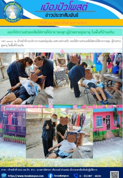 ออกให้ความช่วยเหลือใส่สายให้อาหารหลุด ผู้ป่วยชายสูงอายุ ในพื้นที่บ้านแก้ม