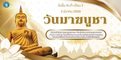 วันมาฆบูชา วันขึ้น 15 ค่ำ เดือน 3 ในปีนี้ตรงกับวันที่ 3 มีนาคม 2569 เป็นวันสำคัญทางพระพุทธศาสนา ที่ระลึกถึงการประชุมพระอรหันต์ จำนวน 1,250 รูป โดยมิได้นัดหมาย และเป็นวันที่พระพุทธเจ้าทรงแสดงโอวาทปาติโมกข์ ทำความดี ละเว้นความชั่ว ทำจิตใจให้บริสุทธิ์