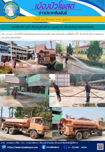 ออกให้บริการน้ำ สำหรับล้างทำความสะอาด บริเวณวิทยาลัยเทคนิคปัว