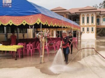 ออกให้บริการฉีดล้างทำความสะอาดวัดป่าลาน