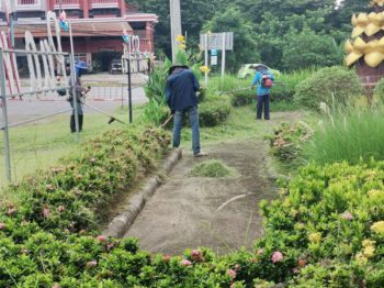 ปรับปรุงภูมิทัศน์และตัดหญ้า บริเวณหน้าศูนย์บริการนักท่องเที่ยว เทศบาลตำบลปัว