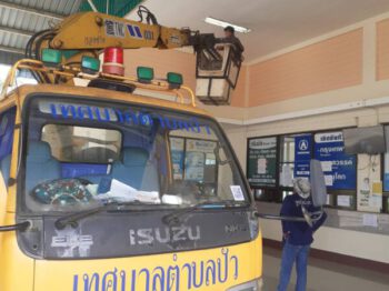 เปลี่ยนหลอดไฟฟ้าส่องสว่าง บริเวณจุดจอดรถสถานีขนส่งผู้โดยสารอำเภอปัว